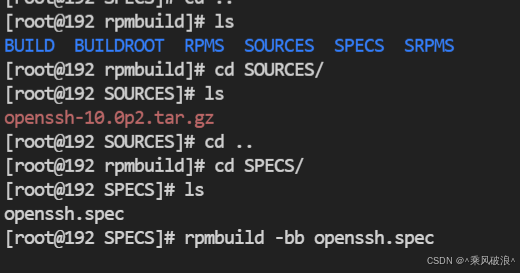 把源码包放置在:/root/rpmbuild/SOURCES目录下 过程中发现openssh-10.0p2.tar.gz解压完为openssh-10.0p1 注意一下 开始构建可能会提示SOURCE下找不到包
