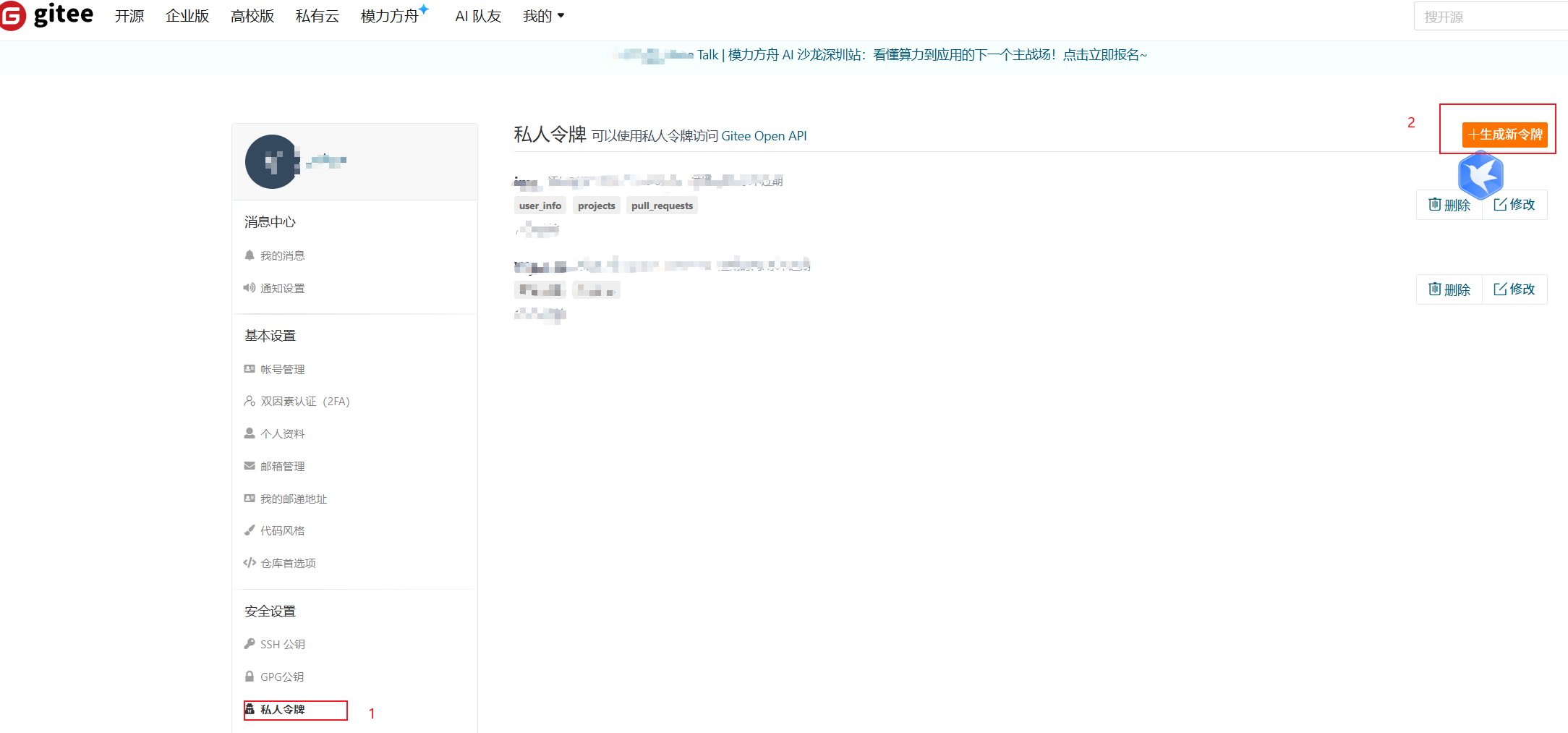 在gitee上创建仓库(图床),设置里创建并复制私人令牌