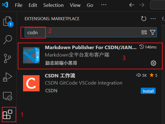 电脑安装vscode,插件里搜csdn,安装Markdown Publisher For CSDN插件。