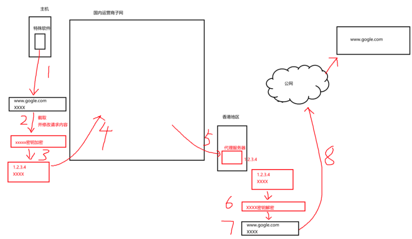 我们知道在国内是不允许访问谷歌等一些国外的网站的,那么此时就会用到一些特殊的软件,那么这种软件的原理是什么呢?