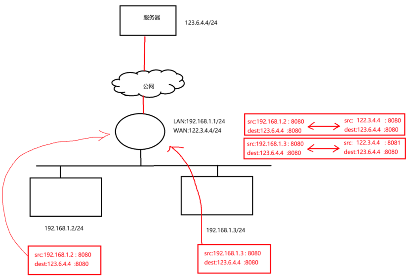 在IP协议章节,我们谈论过NAT,NAT是将源私有地址不断替换成公有地址以实现多台设备共享一个公网IP访问互联网的技术。而我们一直没谈论过当报文返回时,如何准确识别并转发给原始请求设备的问题。我们好像不知道它到底是怎么返回给正确主机的。
