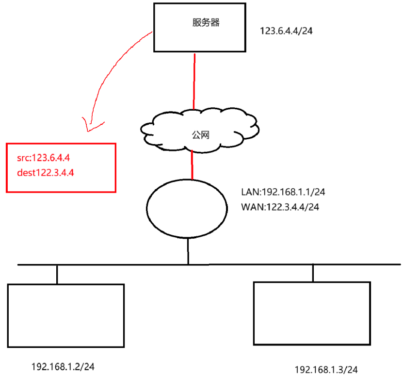 当转发到目标主机的内网路由器时,因为内网路由器只知道目标主机的IP地址,但不知道MAC地址,所以此时采用ARP协议。广播一个ARP报文给该内网内的所有主机。而每个主机接收到该报文时,第一步是先将该报文进行分离,检查发现目的地址是广播地址,并且帧类型属于0806,即ARP协议类型,于是进一步解析ARP报文内容,解析发现目的IP地址不是自己则丢弃该ARP报文。而如果是目标主机后就会检查OP,发现OP标志位为1表示ARP请求,所以此时会给目的MAC的路由器发送ARP应答,携带上自身的MAC地址。最终路由器获取到该目的主机的MAC地址就能继续封装MAC帧,完成报文发送。