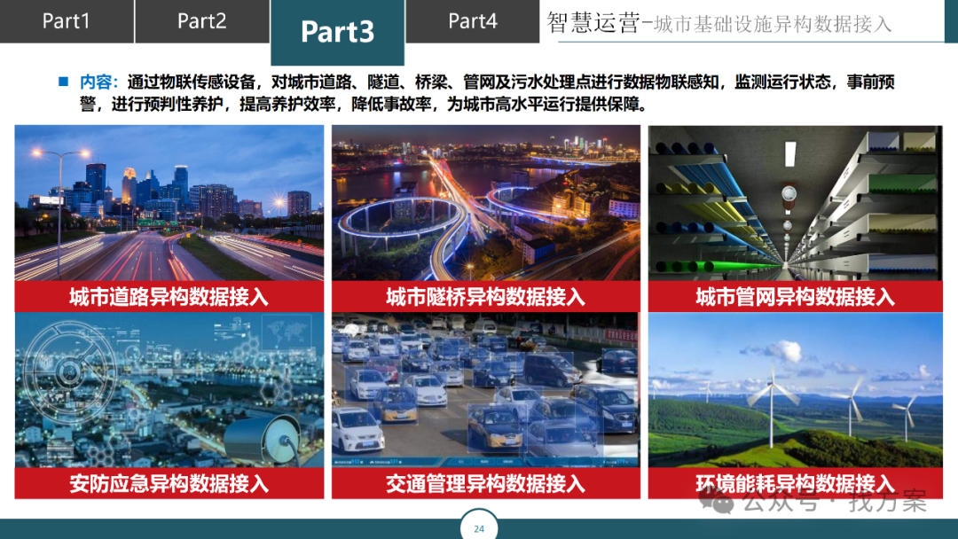 感知层:整合视频监控、智慧灯杆、道路感知、桥梁感知、管网感知等设备,实现对城市基础设施、环境、交通等信息的全面采集;