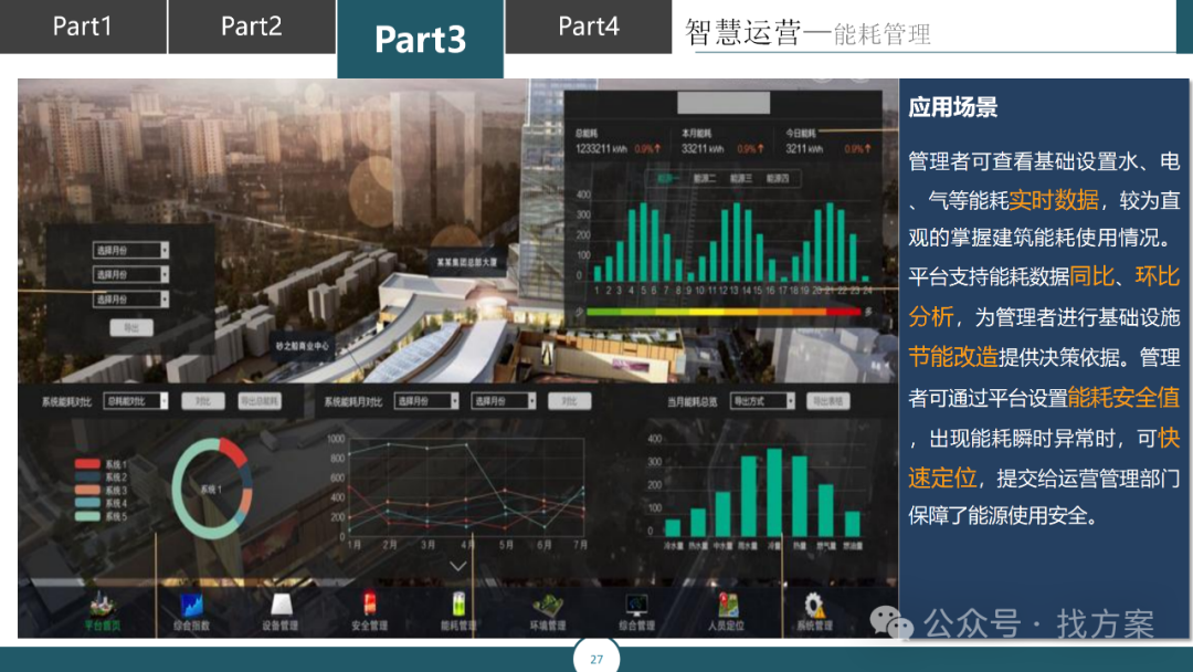 能耗监测:实时采集水、电、气等能耗数据,支持同比、环比分析,可设置能耗安全阈值,异常时自动预警,为节能改造提供数据支撑;