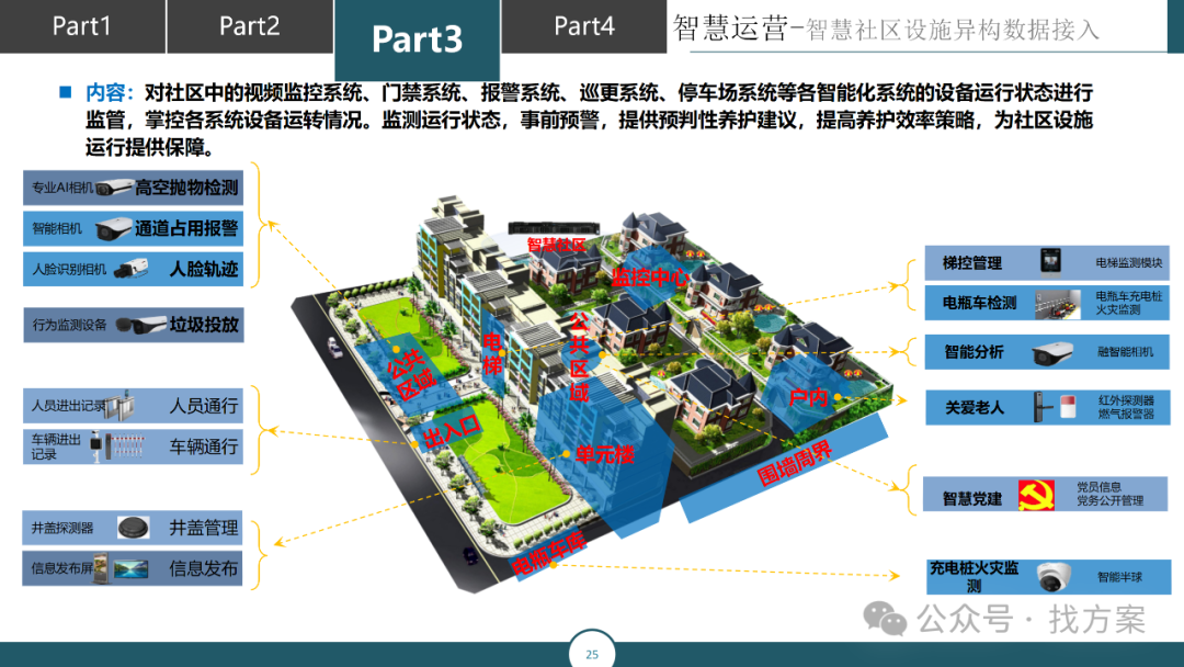 社区安全管控:集成视频监控、人脸门禁、高空抛物检测、电瓶车火灾监测、燃气报警器等设备,全方位保障社区安全;