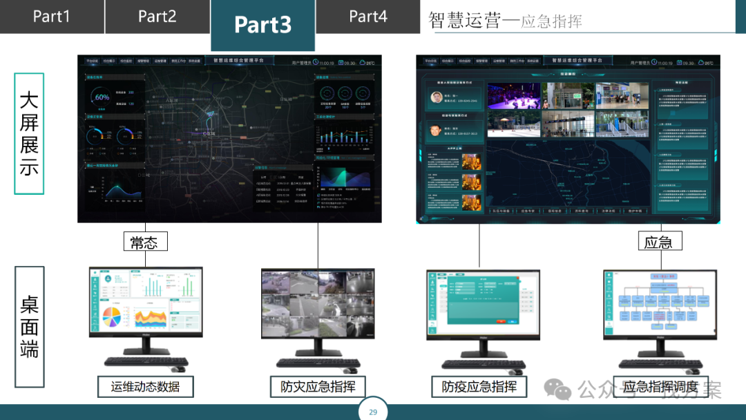 用户层:面向管理者、工作人员、市民等不同用户,通过大屏、桌面端、APP、公众号等多种终端提供服务。