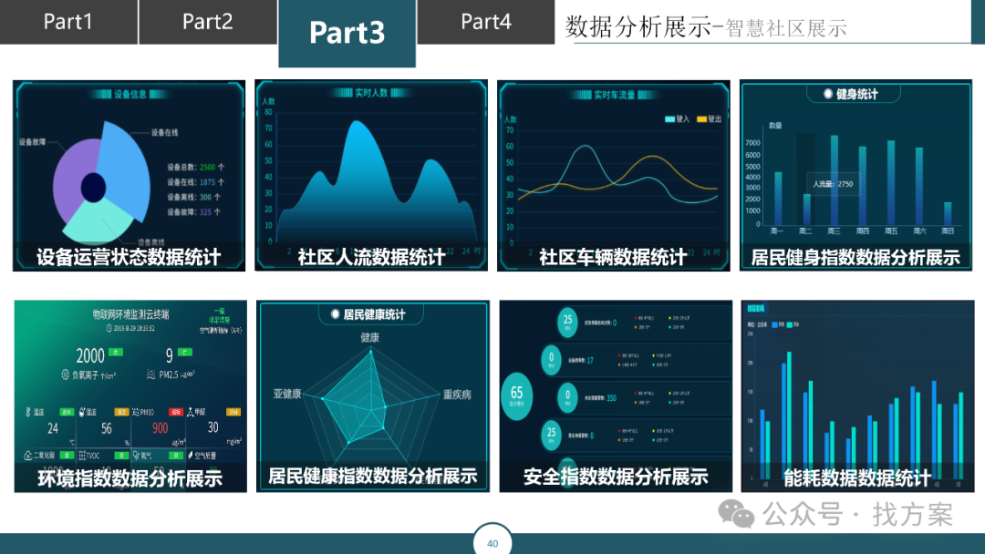 社区数据分析:包括人流、车流量、设备运行状态、居民健康、健身情况等,为社区优化提供依据;
