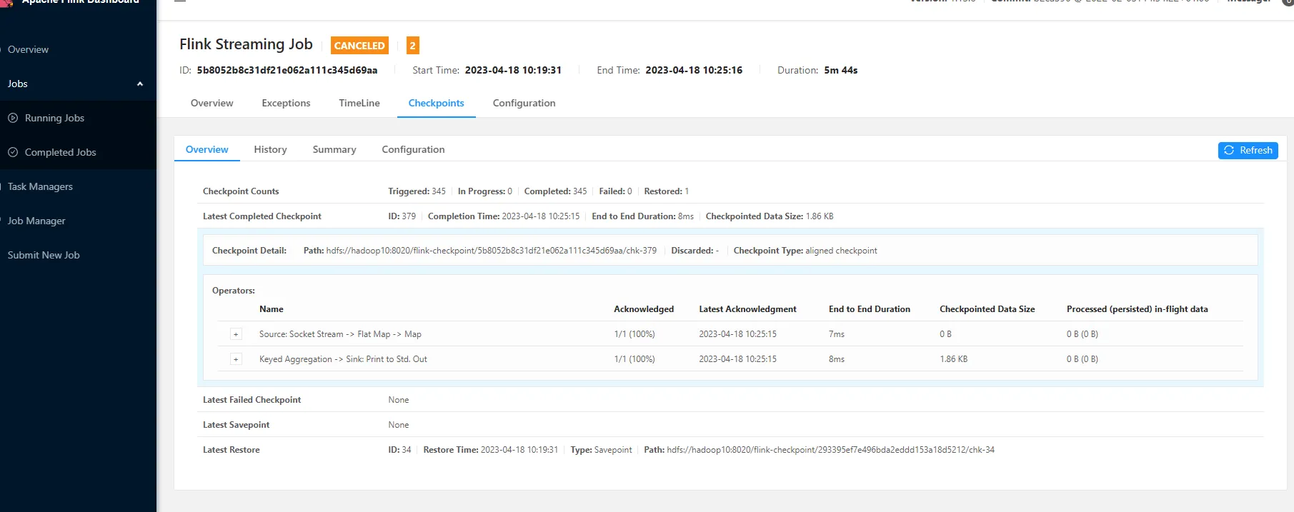 flink run -c com.bigdata.day06._01CheckPointDemo -s hdfs://bigdata01:9820/flink/checkpoint/bf416df7225b264fc34f8ff7e3746efe/chk-603 /opt/app/FlinkDemo-1.0-SNAPSHOT.jar
