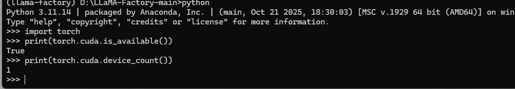 print(torch.cuda.device_count()) # gpu数量, 0就是没有,1就是检测到了
