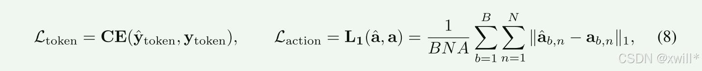 在 LLM 的分词器中引入了一个特殊的 token <ACT>,以显式地发出动作预测任务的信号。具体来说,将这个 <ACT> token 追加到每个语言指令序列的末尾作为目标 token 标签,记为 ytoken。