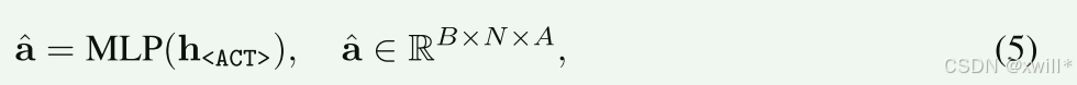<ACT>作为"动作的触发词,将隐藏层的状态通过MLP映射为一个连续的动作。