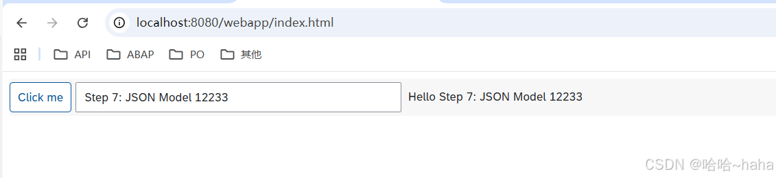 与Step 6:Modules练习相比:新增input控件,取值与App.controller.js中定义的json模型绑定