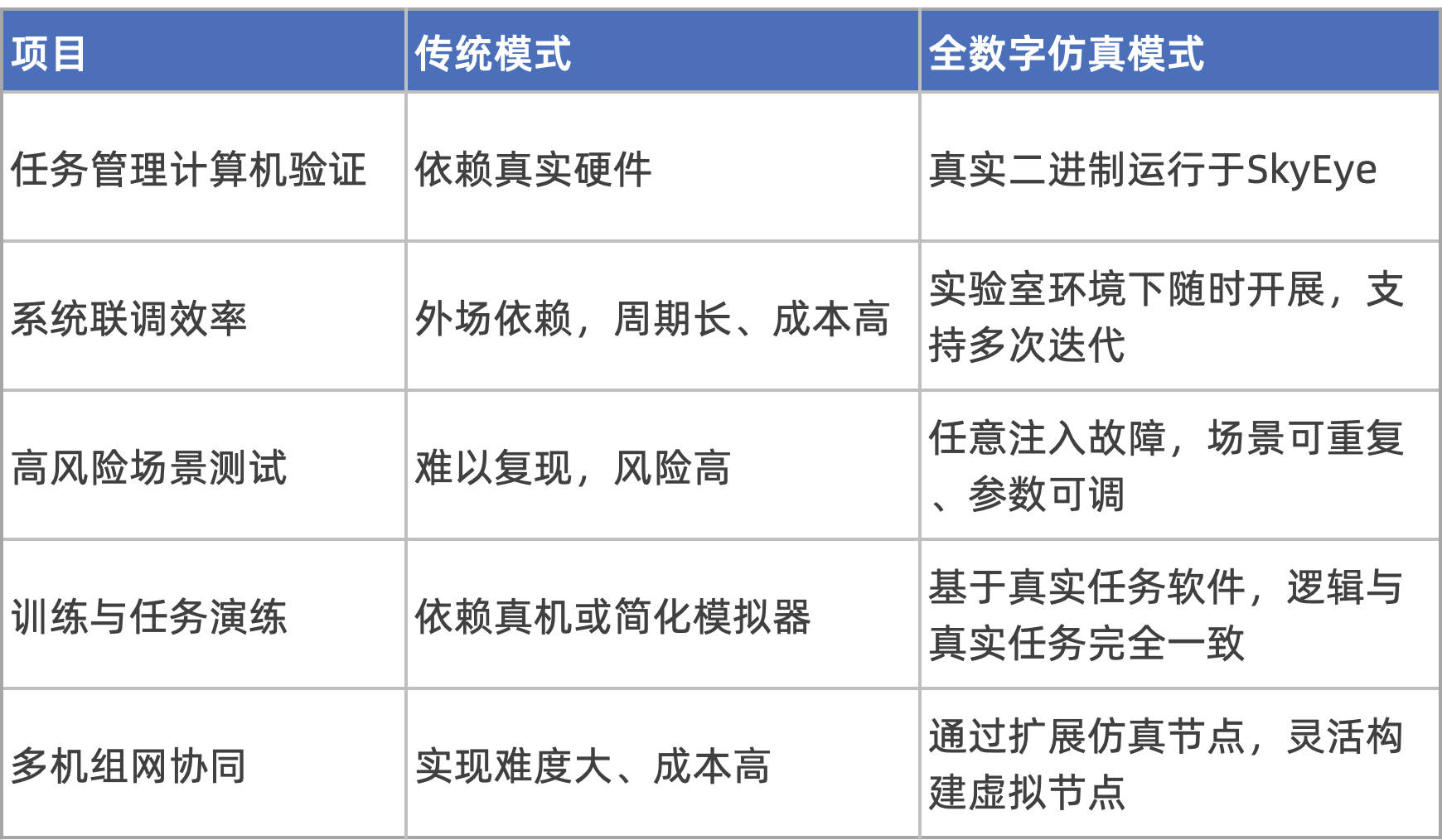 基于天目全数字实时仿真软件SkyEye所构建的新研发体系,则围绕"任务管理计算机的数字化仿真"实现了关键转变------使无人机研发从硬件驱动走向软件先行,真正实现: