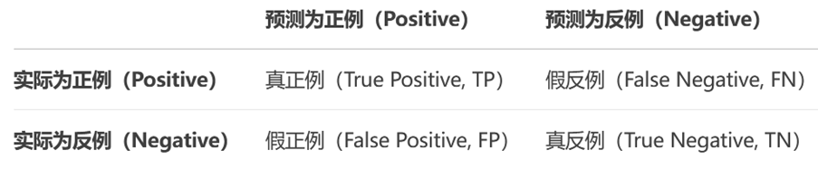 伪反例(FN,False Negative)真实值是 假例 的样本中,被分类为 正例 的样本数量有多少,叫做