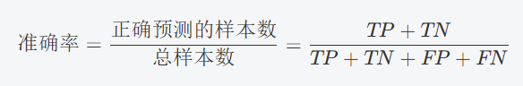 准确率就是模型预测正确的样本数占总样本数的比例。计算公式为:
