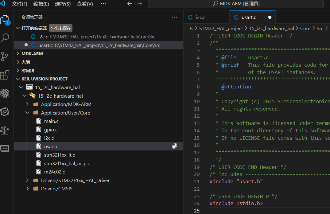 使用vscode 打开编写 不喜欢的也可以使用keil编写