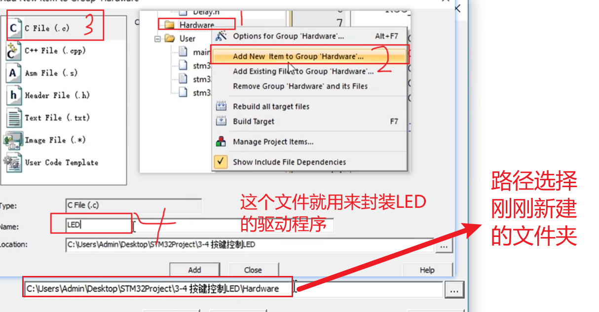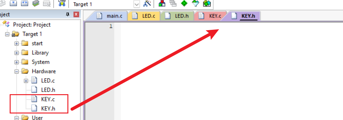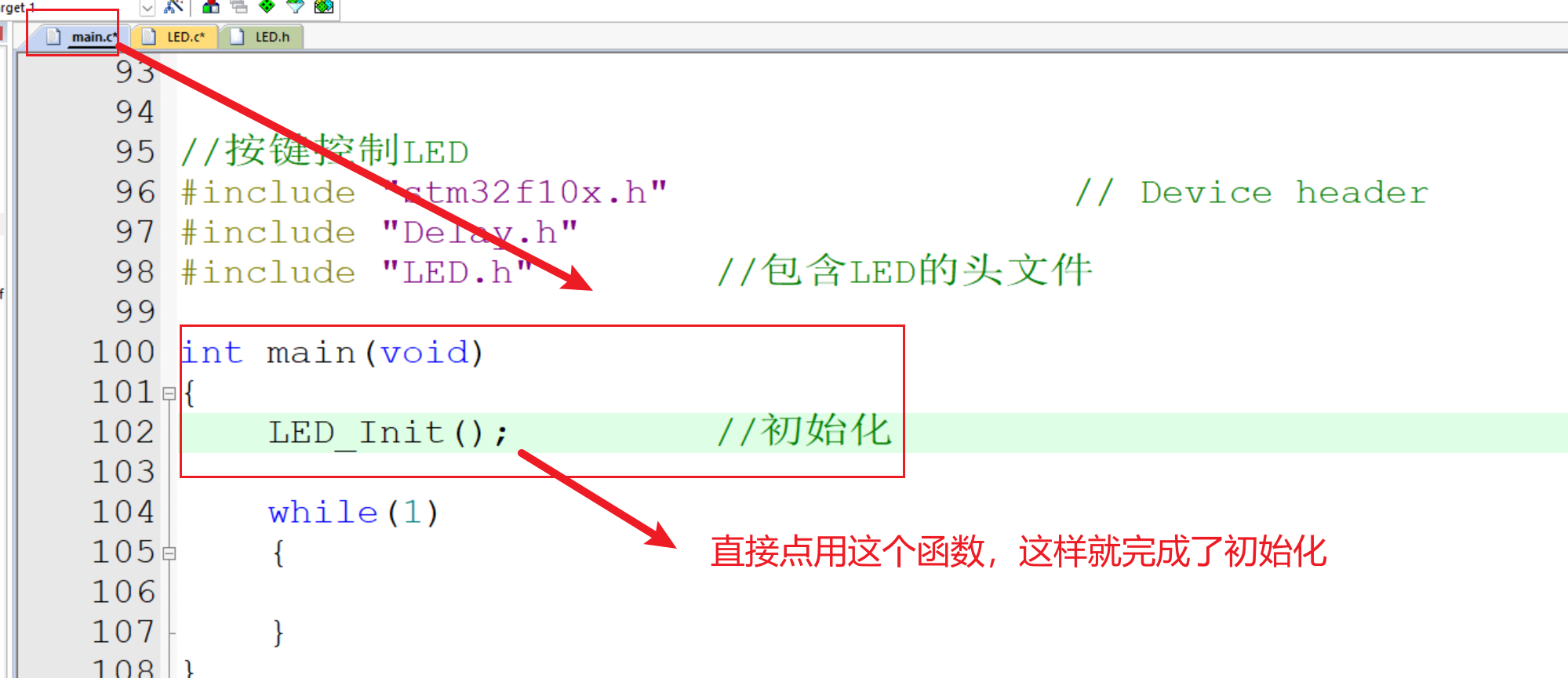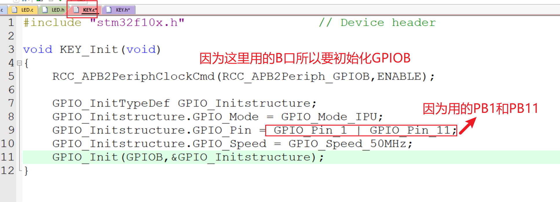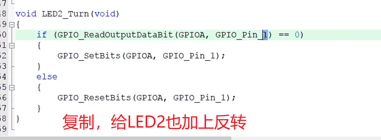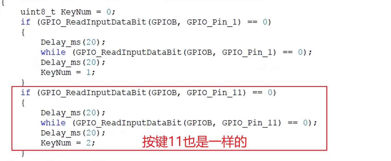 和上面一样的步骤,可以将按键控制LED的代码复制过来;