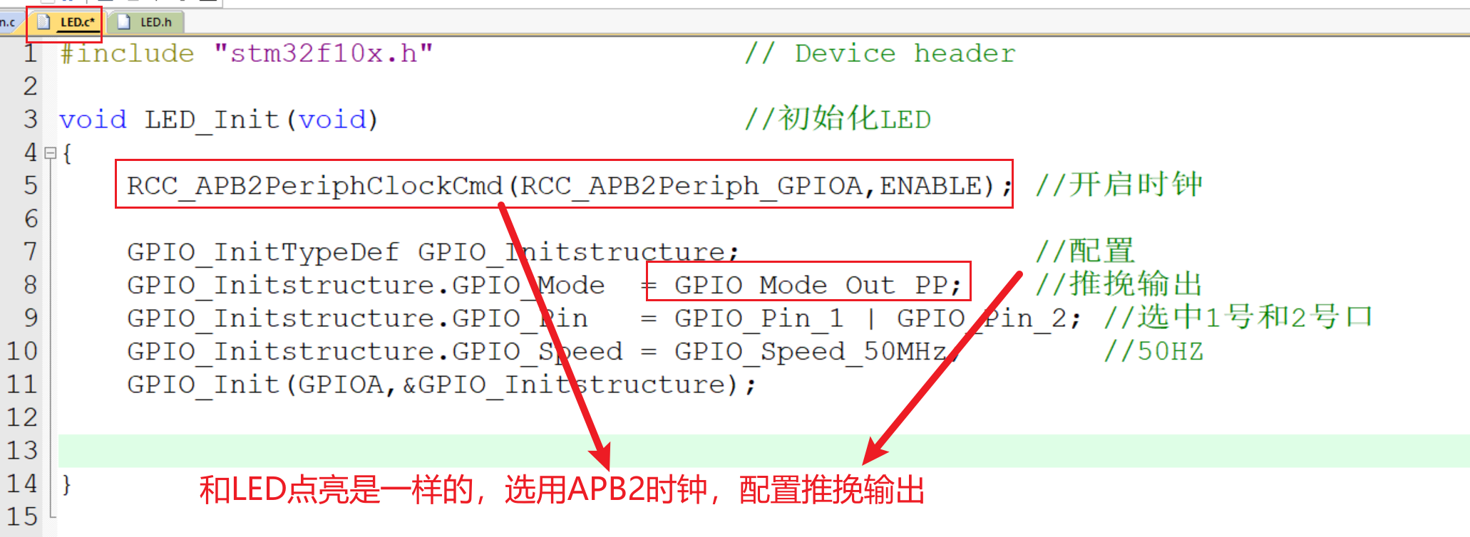 最后使用GPIO_Init函数,将指定的GPIO外设初始化好,