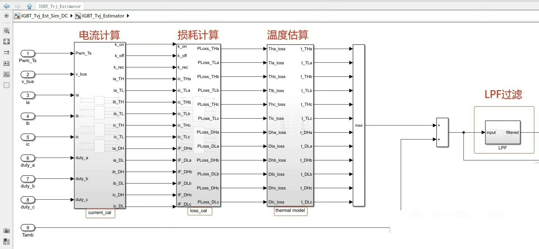 Vip4 IGBT结温估算 国际大厂机密算法,多年实际应用,准确度良好...... 能够同时对IGBT内部6个三极管和6个二极管温度进行估计,并输出其中最热的管子对应温度。 simulink模型除仿真外亦可生成代码...... 提供直流、交流两个仿真模型 提供底层算法模型库(开源,带数据) 提供说明文档 功能模块齐全,可代码生成,含有设计文档说明,参数文档说明,算法流程图等.