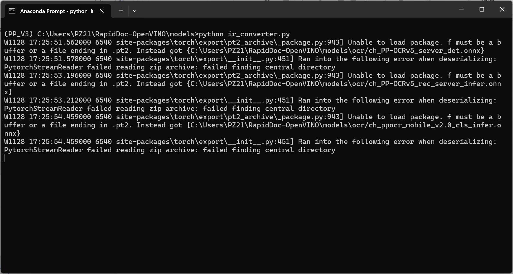 下载完成后运行:python ir_converter.py