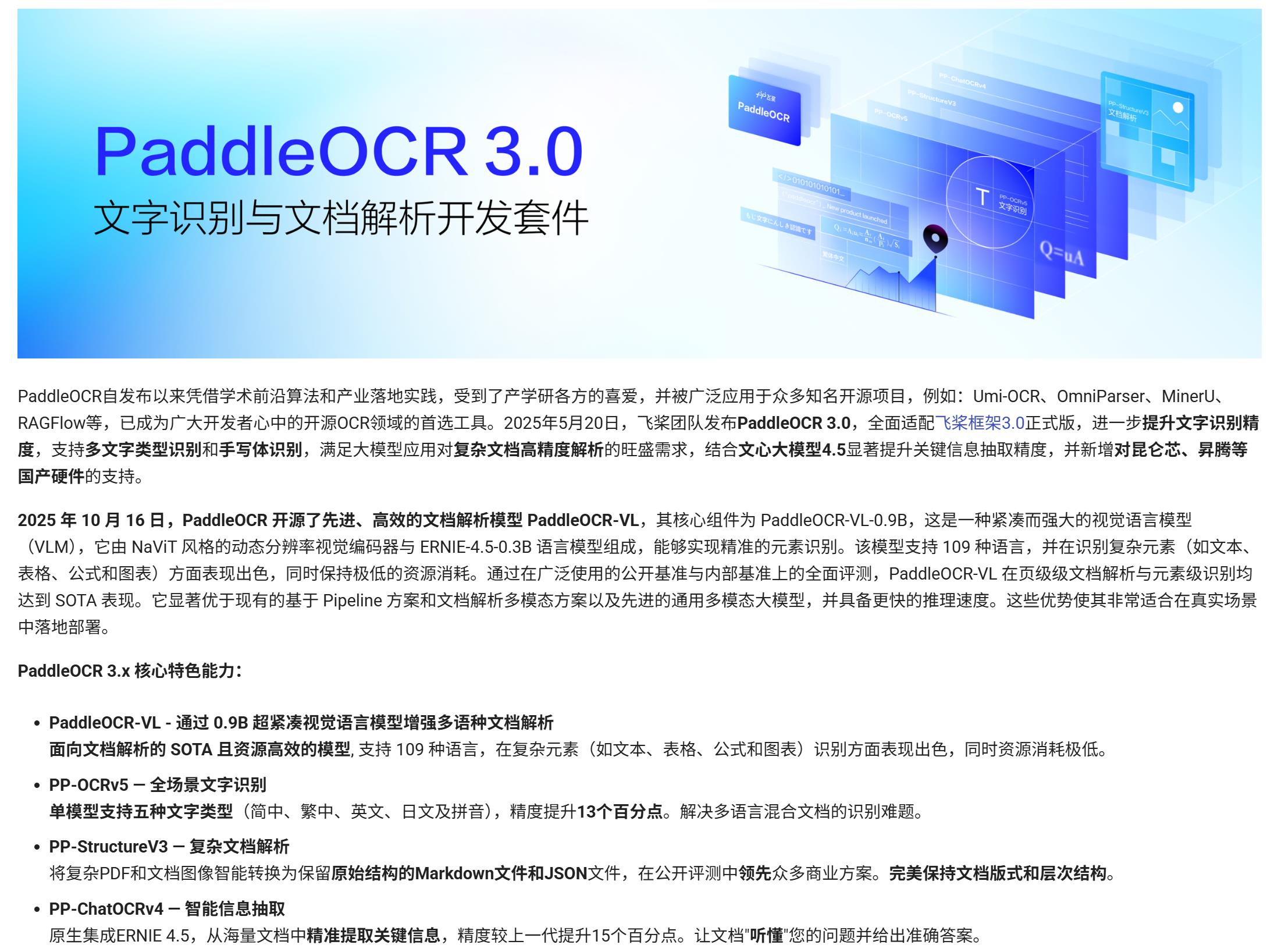 RapidDoc是一个轻量级、专注于文档解析的开源框架,支持OCR、版面分析、公式识别、表格识别和阅读顺序恢复等多种功能。框架基于 Mineru 二次开发,移除 VLM,专注于 Pipeline 产线下的高效文档解析,在 CPU 上也能保持不错的解析速度。本文章所使用的核心模型主要来源于 PaddleOCR 的 PP-StructureV3 系列(OCR、版面分析、公式识别、阅读顺序恢复,以及部分表格识别模型),并已全部转换为 ONNX 格式,支持在 CPU/GPU 上高效推理。