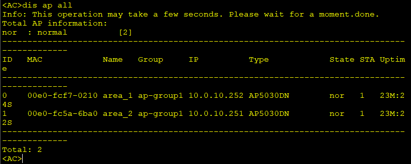 \[AC-wlan-view\]dis ap all