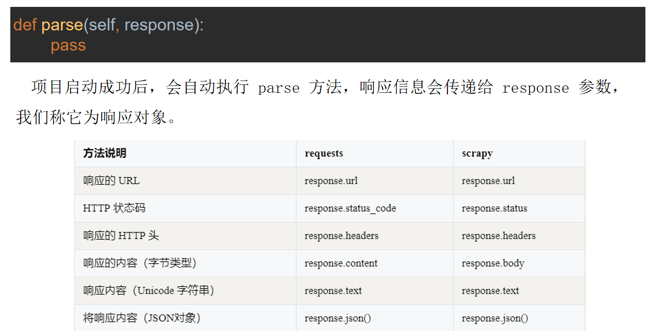 response.xpath('xpath表达式'):使用 XPath 提取数据。