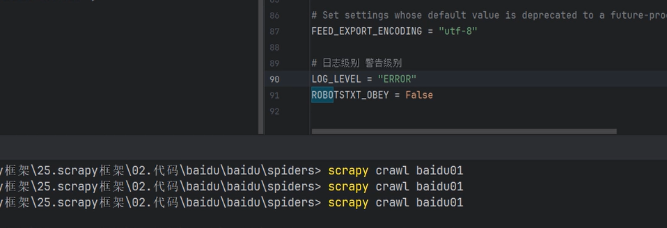 ROBOTSTXT_OBEY: 是否遵守 robots.txt 规则,控制是否爬取被禁止的页面