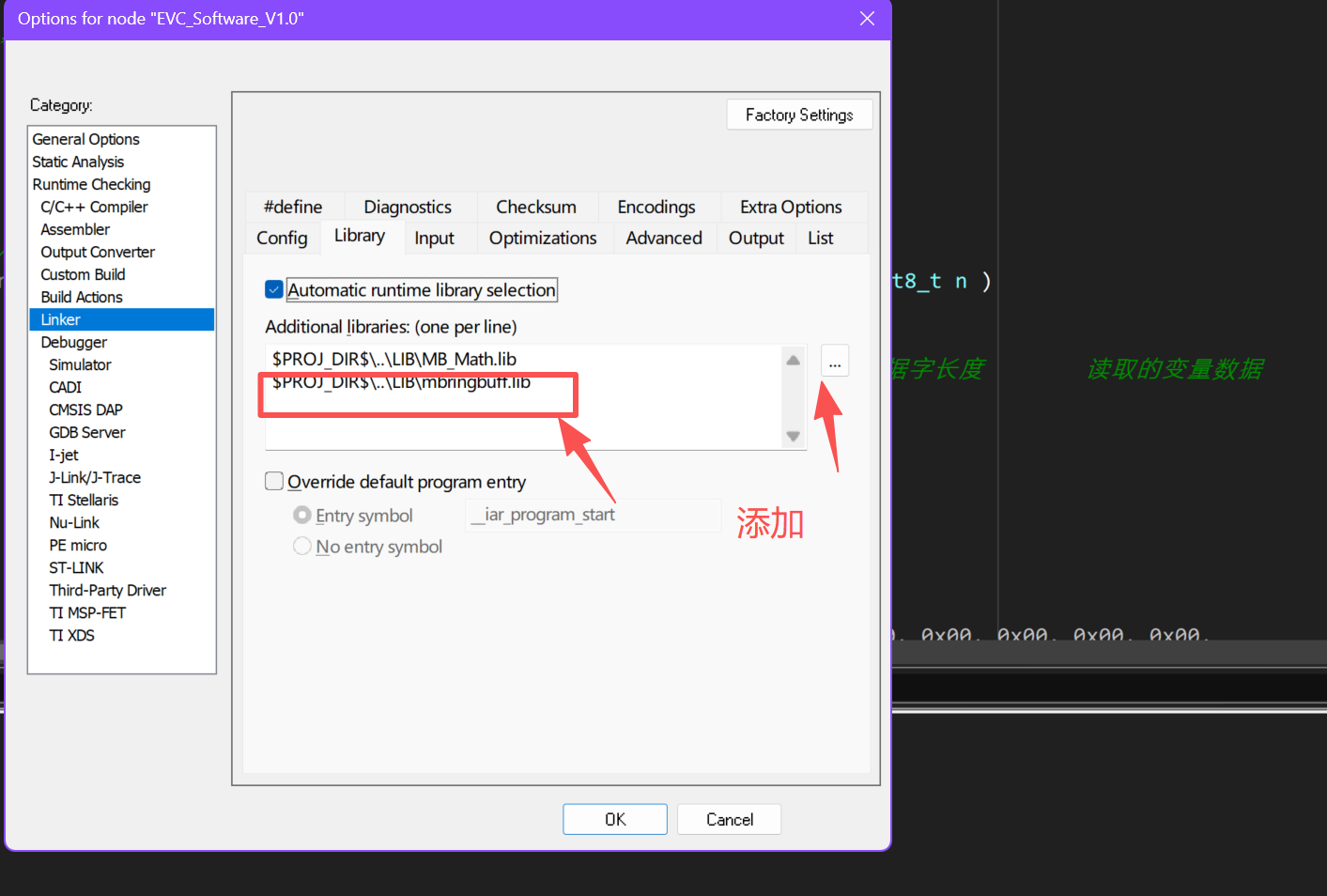 那么现在就有一个文件,IAR中LIB库文件是如何添加到工程中的呢?我找了好久,最终发现是在