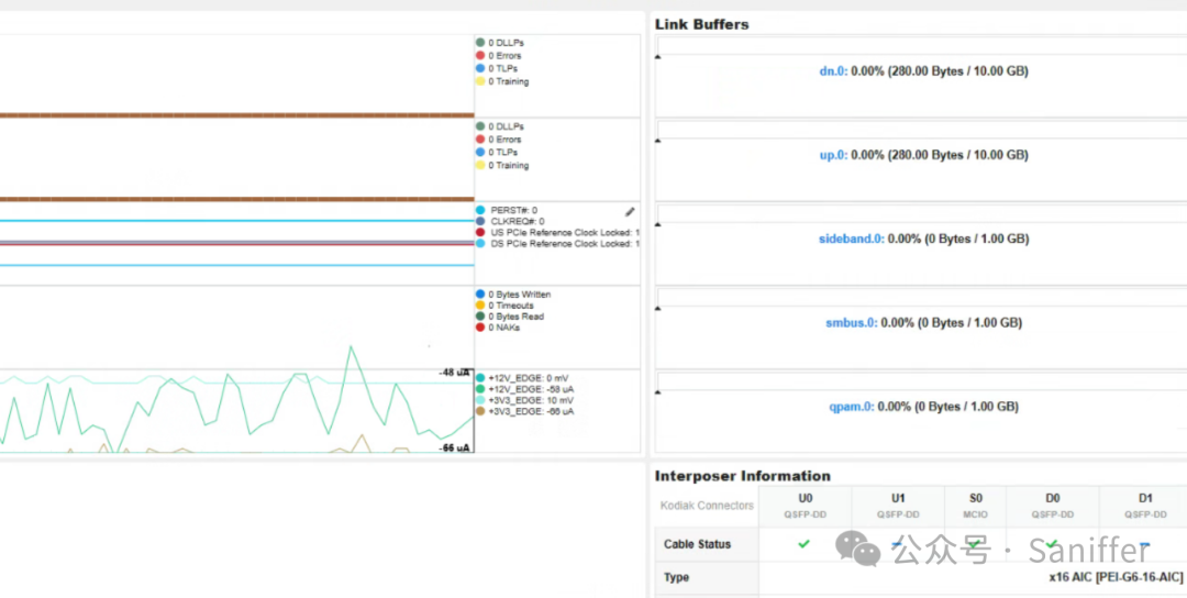 我们经常看到很多设备,包括示波器,PCIe协议分析仪可以监控sideband信号,包括RefClk信号,参看下图为SerialTek PCIe 5.0和6.0协议分析仪监控RefClk以及PERST#信号的情况,实际上该SerialTek PCIe分析仪可以监控所有的sideband信号,包括图片上显示的12V/3.3V功耗(电压、电流)。