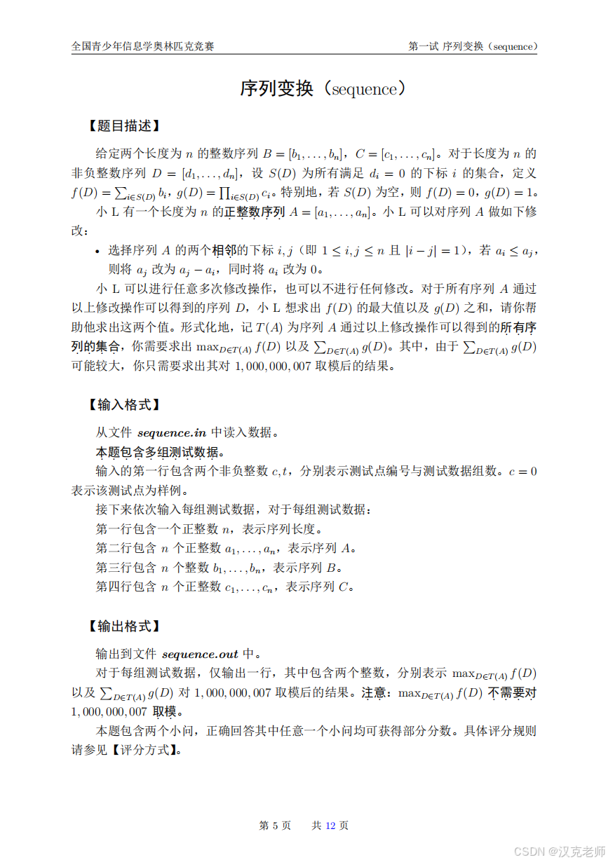 现在问题是:对所有"可能得到的 D"(也就是从 A 经过若干次允许的操作能得到的所有最终序列),求:
