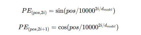 位置嵌入 :由于自注意力机制本身不具备位置信息感知能力,必须显式地注入序列的顺序信息。原始Transformer论文使用正弦余弦函数来生成绝对位置编码: