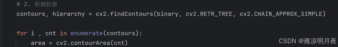 cv2.findContours() #返回轮廓列表和层级信息contours, hierarchy = cv2.findContours(image, mode, method)