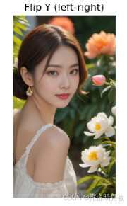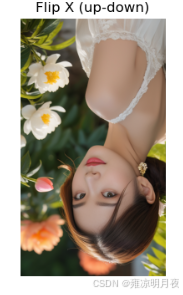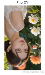 def flip(img): img_flip_x = cv2.flip(img, 0) # 上下翻转 img_flip_y = cv2.flip(img, 1) # 左右翻转 img_flip_xy = cv2.flip(img, -1) # 对角线翻转 show_img(img,"Original") show_img(img_flip_x,"Flip X (up-down)") show_img(img_flip_y,"Flip Y (left-right)") show_img(img_flip_xy,"Flip XY")