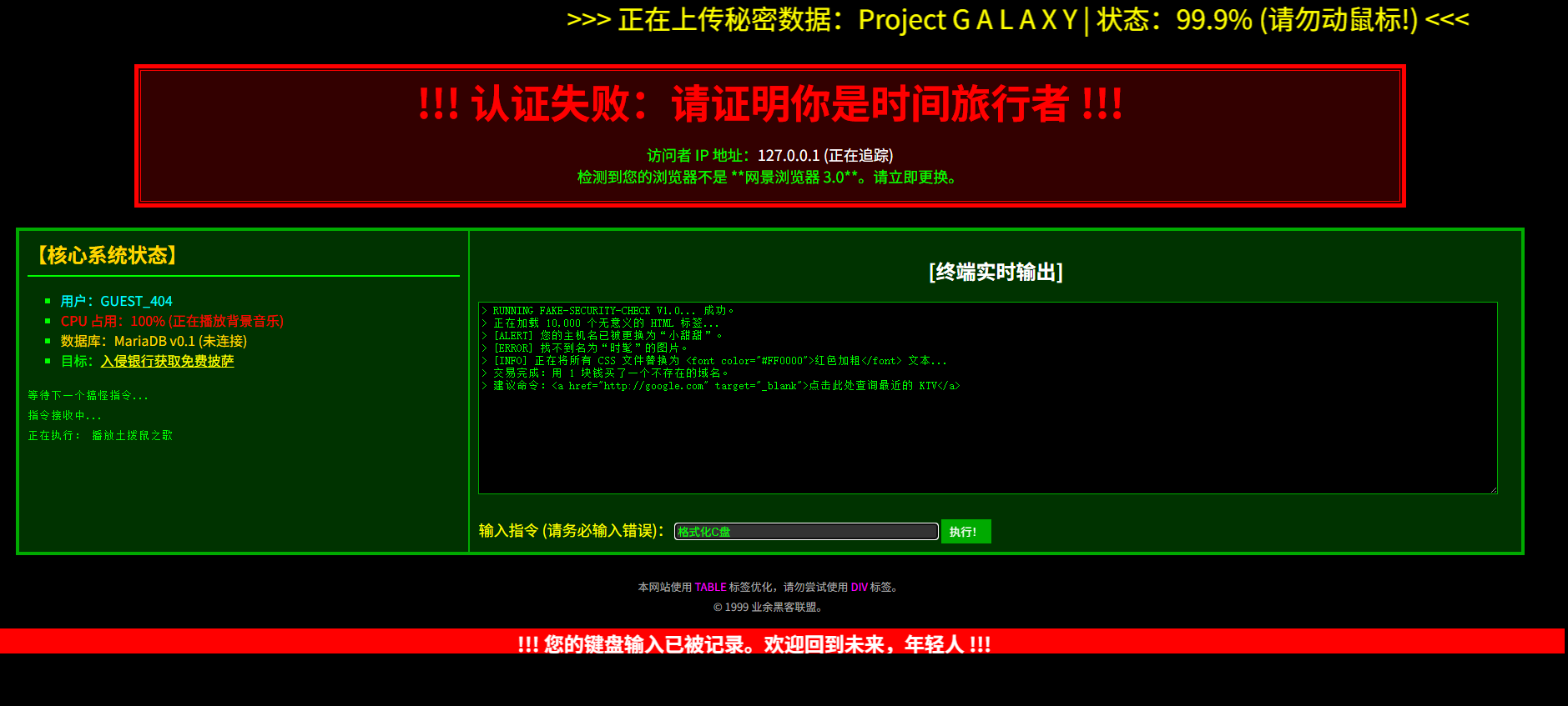 <b>!!! 您的键盘输入已被记录。欢迎回到未来,年轻人 !!!</b>