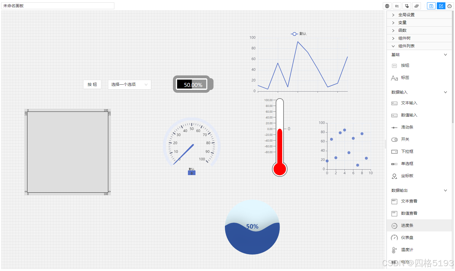 - 数据显示:仪表盘、温度计、进度条、LED指示灯