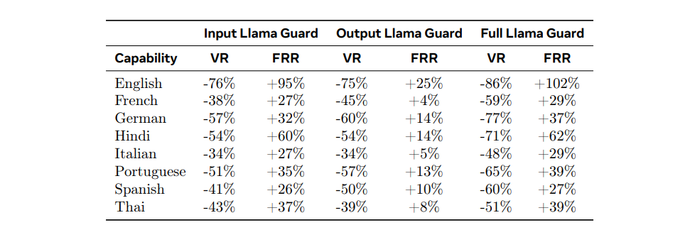 表33 Llama 3的语音接口在MuTox数据集上的语音毒性。AT指的是添加的毒性分数,LT指的是丢失的毒性分数。
