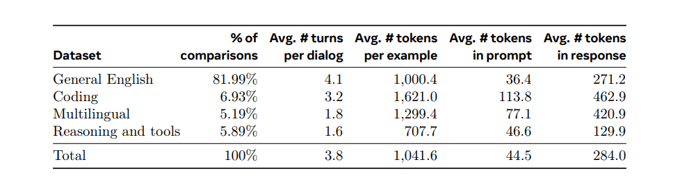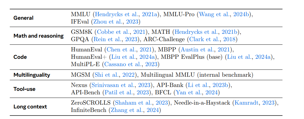 **语言模型后训练。**预训练的语言模型对语言有着丰富的理解,但尚不能很好地遵循指令,也不能完全表现得像我们期望的助手。我们通过多轮方式使用人类反馈对模型进行对齐,每一轮包括在指令微调数据上的监督微调(SFT)以及直接偏好优化(DPO;Rafailov 等,2024)。在这一后训练阶段²,我们也整合新的能力,例如工具使用,并在编码、推理等其他领域观察到显著提升。详情见第 4 节。最后,安全缓解措施也在后训练阶段被加入模型中,细节见第 5.4 节。