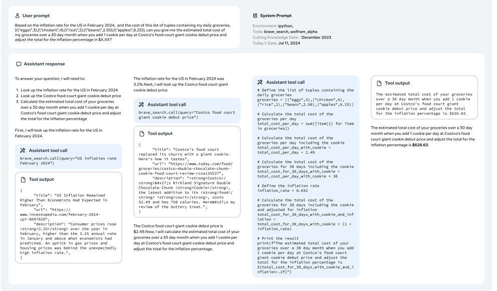 最终得到的模型具备丰富的能力。它们可以使用至少八种语言回答问题,编写高质量代码,解决复杂推理问题,并能够开箱即用或以 zero-shot 方式使用工具。