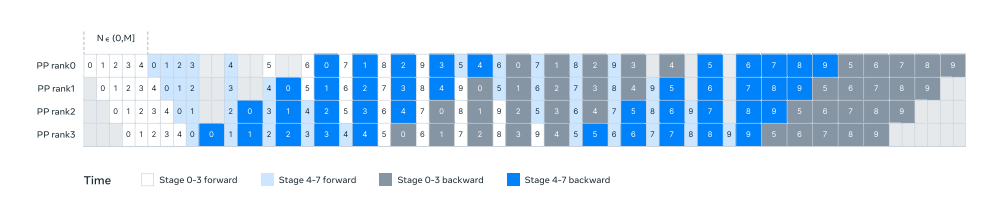 • 我们使用一种注意力 mask,防止同一序列中不同文档之间的自注意力。 我们发现这种改变在标准预训练中影响有限,但在超长序列的持续预训练中非常重要。