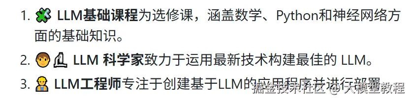 这个课程最大的亮点就是它的体系化和实践性,把复杂的 LLM 领域拆解成了三个清晰的部分,每个阶段都有清晰的路线图,对想系统学习的同学来说,简直是福音