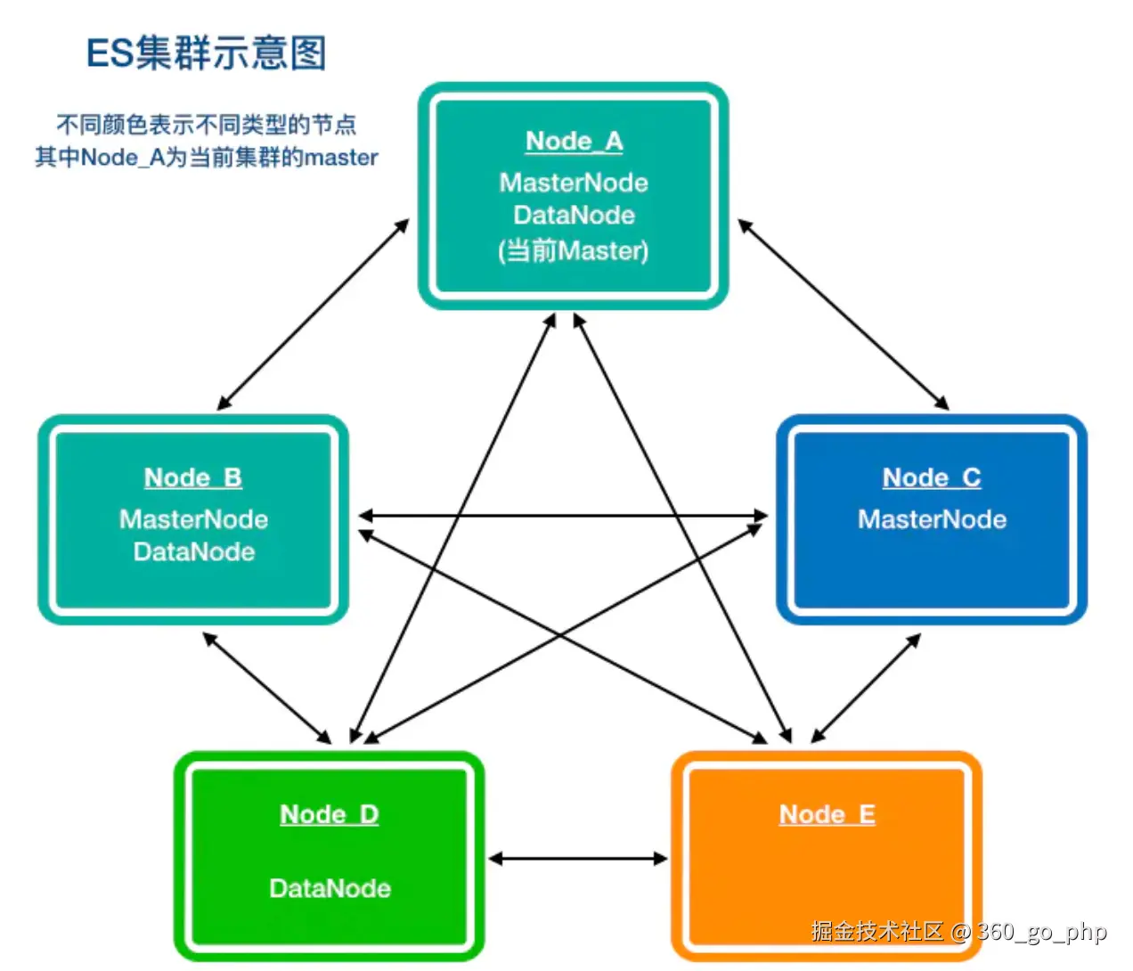 节点是属于集群一部分的单个服务器。它存储数据并参与群集索引和搜索功能。