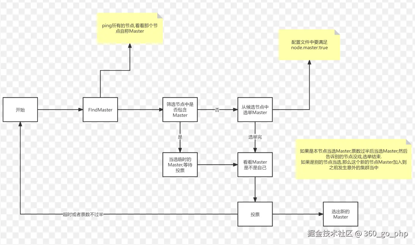 Elasticsearch的选主是ZenDiscovery模块负责的,主要包含Ping(节点之间通过这个RPC来发现彼此)和Unicast(单播模块包含一个主机列表以控制哪些节点需要ping通)这两部分;