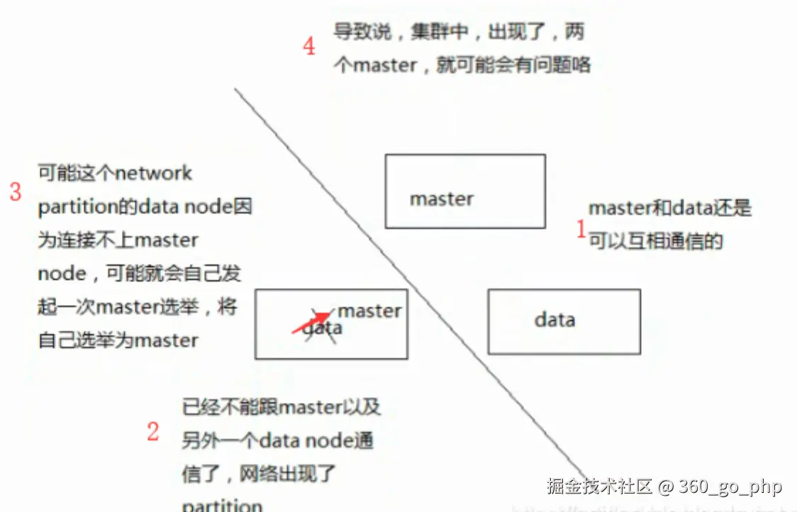节点负载:主节点的角色既为master又为data,访问量较大时可能会导致ES停止响应造成大面积延迟,此时其他节点得不到主节点的响应认为主节点挂掉了,会重新选取主节点。