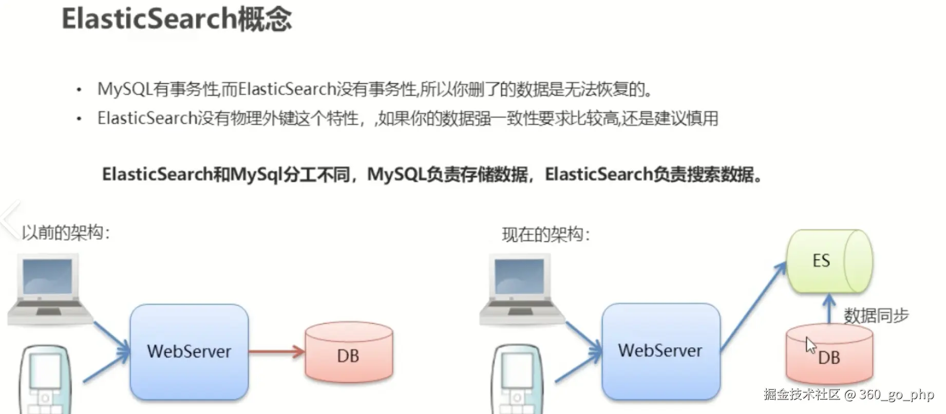系统中的数据, 随着业务的发展,时间的推移, 将会非常多, 而业务中往往采用模糊查询进行数据的搜索, 而模糊查询会导致查询引擎放弃索引,导致系统查询数据时都是全表扫描,在百万级别的数据库中,查询效率是非常低下的,而我们使用 ES 做一个全文索引,将经常查询的系统功能的某些字段,比如说电商系统的商品表中商品名,描述、价格还有 id 这些字段我们放入 ES 索引库里,可以提高查询速度。