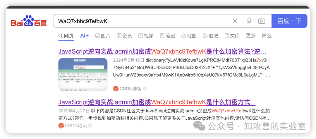手搓了一会 js,又是异或啥的,实在是头疼,后来发现,把 admin 加密后的字符串放到百度一搜,就有师傅逆向出来过