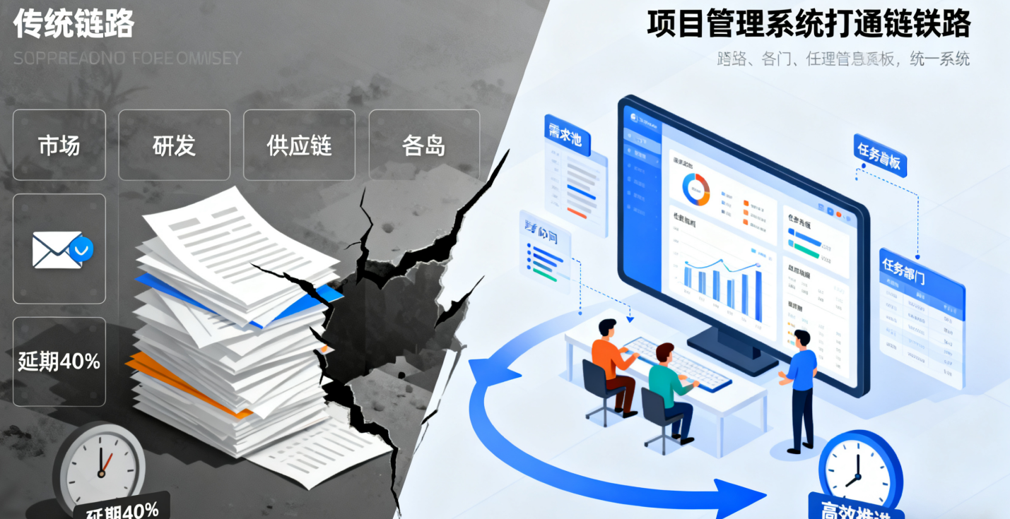 在企业数字化转型过程中,"需求脱节""流程断裂""交付偏差" 是常见痛点 ------ 市场部门提出的业务需求无法精准传递至研发团队,研发进度与资源调配脱节,最终交付成果与实际业务需求存在差距。这些问题的根源,在于数字化转型全链路(从需求发起、项目执行到成果交付)缺乏统一的协同载体。而项目管理系统凭借其全流程覆盖能力,正成为打通这一链路的核心工具,通过标准化流程、数据联动与跨部门协同,让数字化转型项目从需求到交付的每一步都清晰可控、高效衔接。