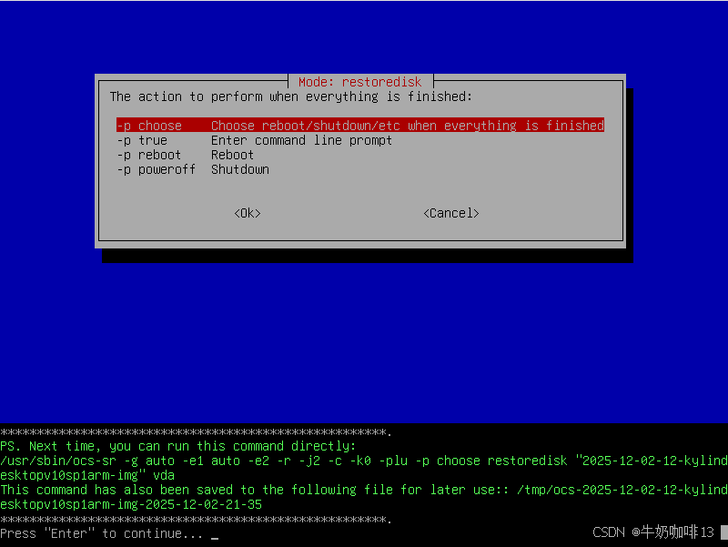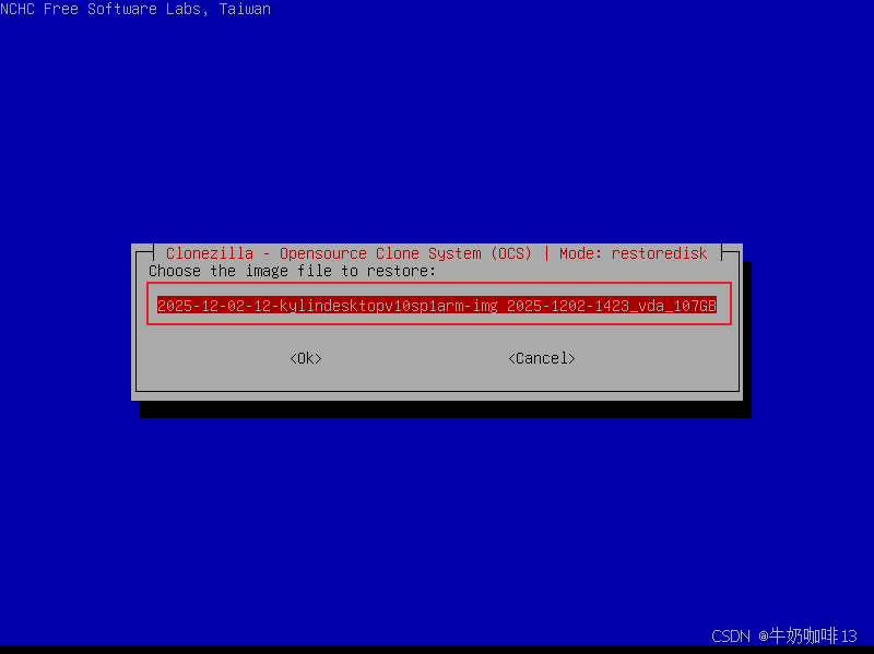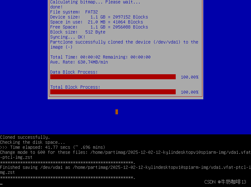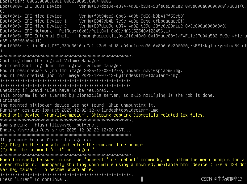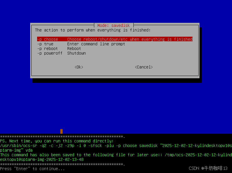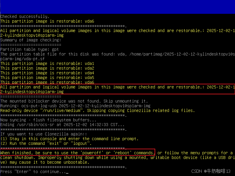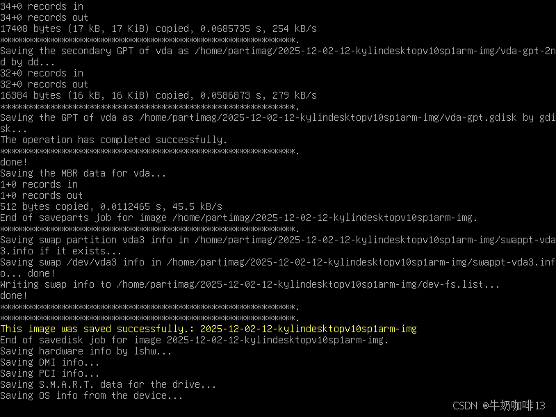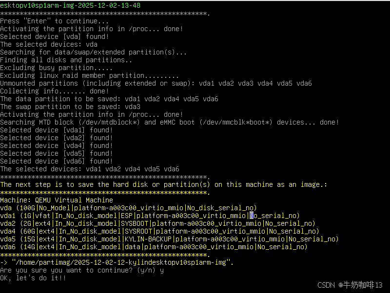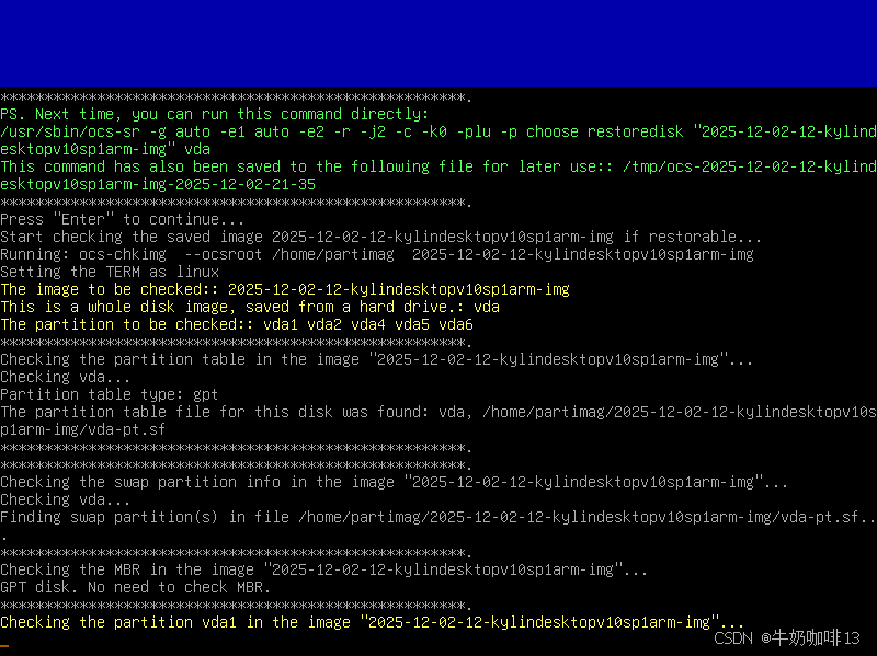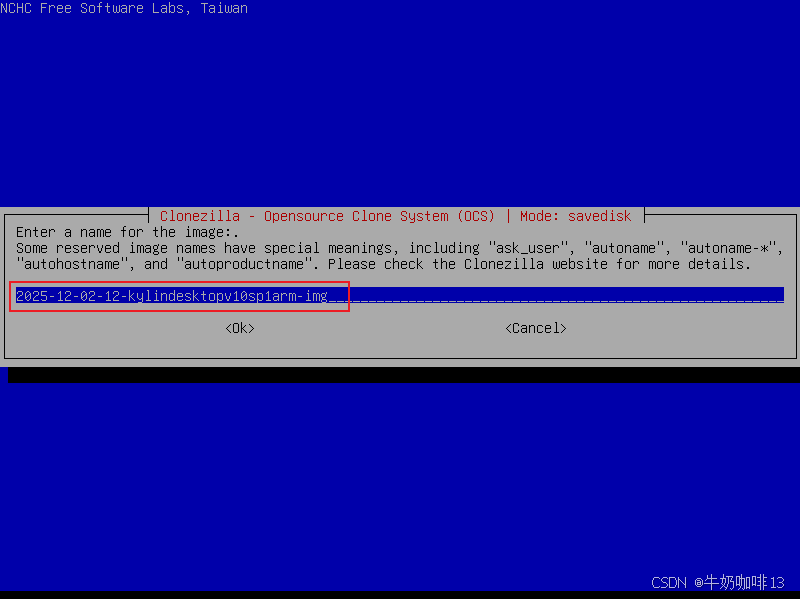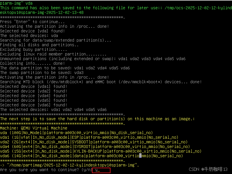 《10》修改默认的日期作为镜像名称在日期后面添加上备份系统的名称版本信息(如:2025-12-02-12-kylindesktopv10sp1arm-img)【修改名称主要是方便我们后续使用区分】后按下Enter键,如下图所示: