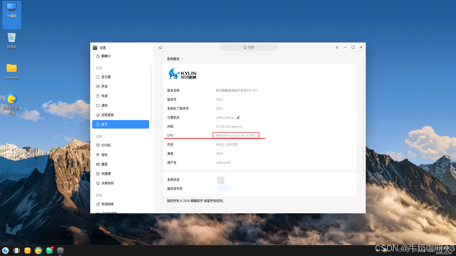 ARM架构系统的备份与还原这里以【银河麒麟桌面系统】为例进行演示操作,其余的ARM架构的服务器或桌面操作系统进行备份与还原都是一样的步骤,详细操作如下所示: