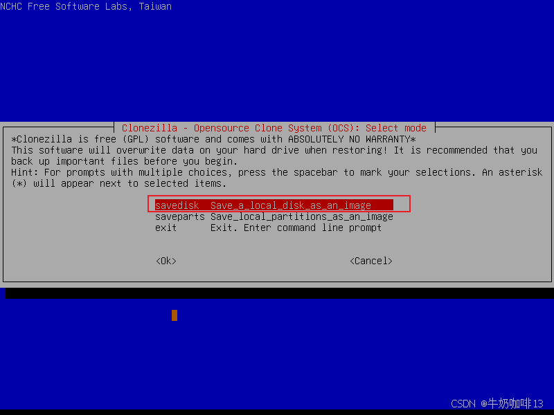 《9》选择【Savedisk Save_a_local_disk_as_an_image】(即:存储本机硬盘为镜像文件)后按下Enter键,如下图所示: